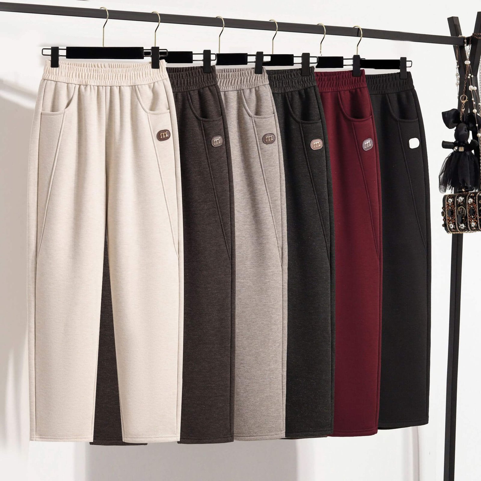 【靚媽女裝】2025秋冬加絨加厚毛呢寬鬆軟糯休閑褲遮肉顯瘦鬆緊腰百搭休閑褲